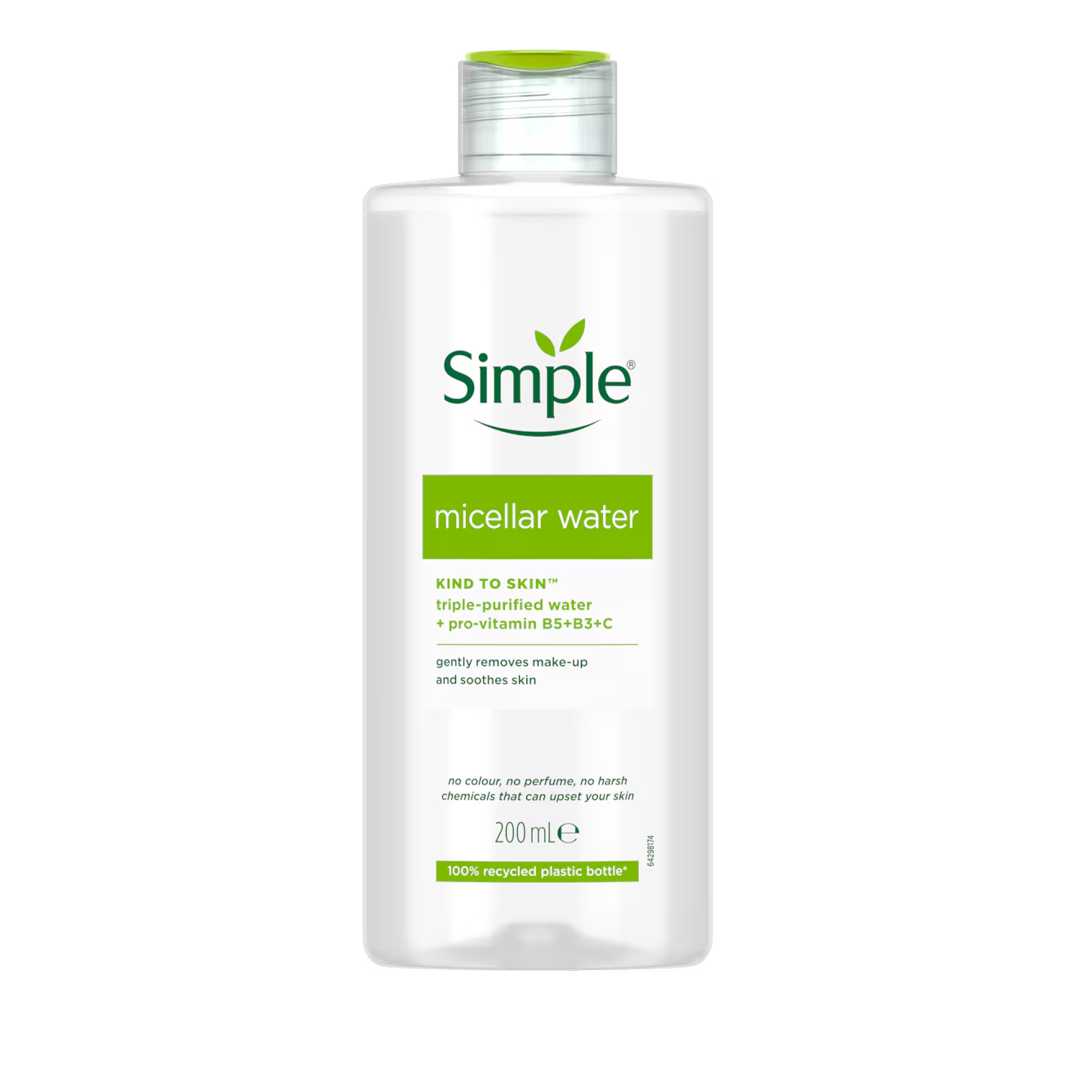 میسلار واتر سیمپل (Simple Micellar Water) یک محلول پاک کننده ملایم و چند کاره است بدون اینکه نیاز به شست و شو با آب داشته باشد و برای پوست های حساس، خشک یا دهیدراته نیز مناسب است.